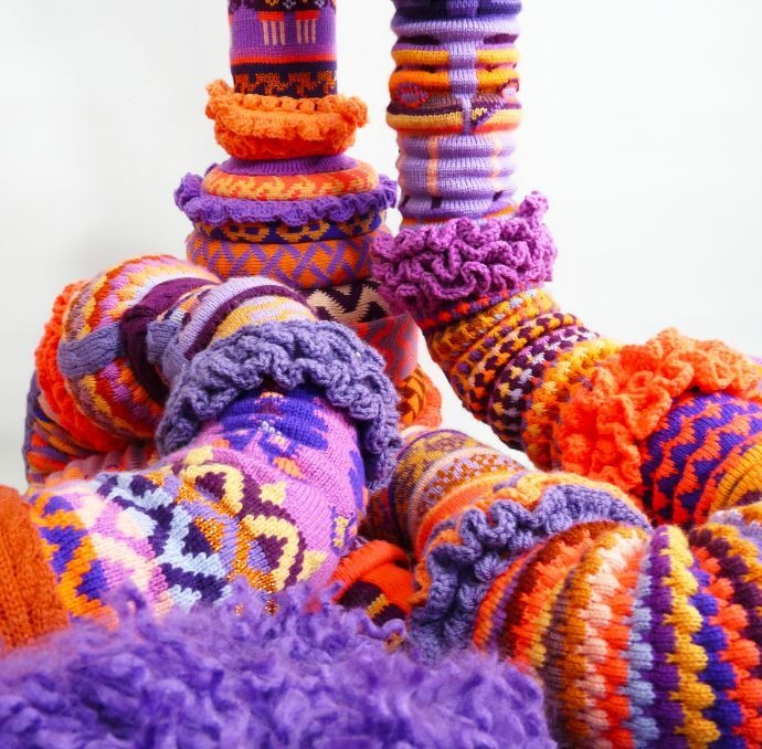 This installation of bright, bold, colourful textile tapestries and 3D shapes explores success and failure, as well as the need for approval and love in an increasingly digital world. Using a range of techniques including tapestry, embroidery, crochet and manipulated machine knitting, local artist Laura Angell invites us into a world of symbols, omens and lucky charms.
