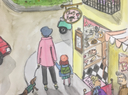In this series of paintings for children by Jennie O’Connell, we follow Moya and her friends and family as they explore their imaginary city through the seasons.
