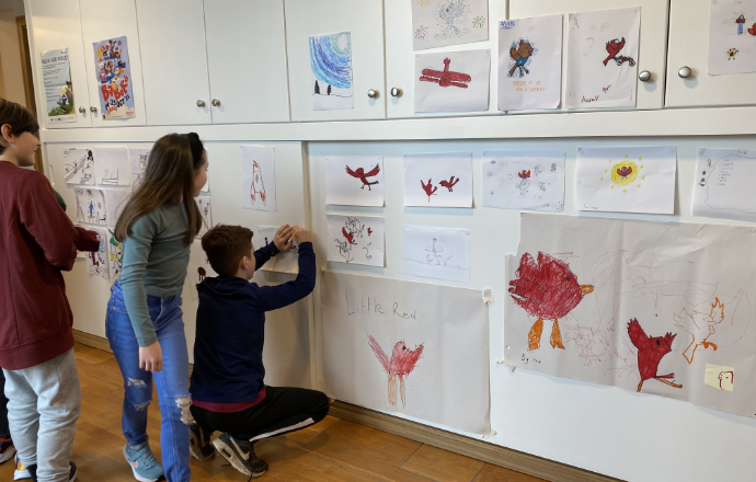 Early in 2023, the Children's Panel gave their feedback on Baboró's Strategic Plan 2023-2027, before it was launched in May 2023. The panel also created early sketches and a brief to inspire the redesign of Baboró's mascot, Birdie. Designer Sara Moloney's draft design were shared with the children, who chose the new Birdie, unveiled when the Strategic Plan was published.