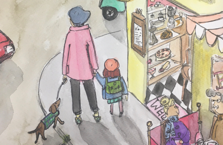 In this series of paintings for children by Jennie O’Connell, we follow Moya and her friends and family as they explore their imaginary city through the seasons. This exhibition of lively and joyful watercolour and digital paintings was presented during our festival in 2021 for the enjoyment by children of all ages.